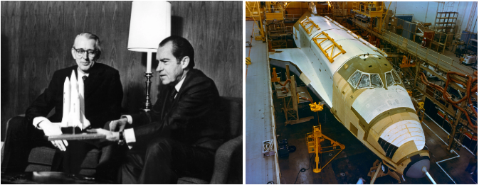 A história da Enterprise começou em 5 de janeiro de 1972, quando o presidente Richard M. Nixon instruiu a NASA a construir o ônibus espacial reutilizável, formalmente chamado de Sistema de Transporte Espacial (STS), afirmando que “isso revolucionaria o transporte para o espaço próximo”. O administrador da NASA, James C. Fletcher, saudou a decisão do presidente como “um passo histórico no programa espacial do país”, acrescentando que mudaria o que os humanos podem realizar no espaço. Depois que o Congresso autorizou os fundos, em 26 de julho a NASA concedeu o contrato à norte-americana Rockwell Corporation de Downey, Califórnia, para iniciar a construção dos primeiros veículos. A fabricação dos primeiros componentes do Veículo Orbital-101 (OV-101) na fábrica da Rockwell em Downey começou em 4 de junho de 1974.
