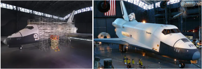 Em 20 de novembro de 2003, trabalhadores rebocaram a Enterprise de seu depósito para um hangar de exibição recém-concluído no Centro Stephen F. Udvar-Hazy do Museu Nacional do Ar e do Espaço do Smithsonian Institution em Dulles, Chantilly, Virgínia. Os especialistas passaram oito meses restaurando o orbitador e o museu o colocou em exibição pública em 15 de dezembro de 2004.