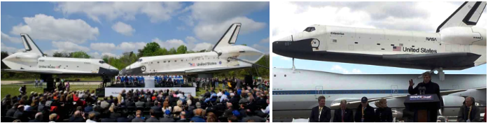 A Enterprise, o primeiro ônibus espacial orbitador construído pela NASA, chegou ao Kennedy Space Center (KSC) da NASA, na Flórida, em 10 de abril de 1979. Embora não fosse digna do espaço, como desbravadora, a Enterprise executou tarefas críticas para garantir o sucesso do programa do ônibus espacial. . Durante sua estadia de quatro meses no KSC, a Enterprise validou os procedimentos para a montagem da pilha do ônibus espacial e das interfaces na plataforma de lançamento. Os testes revelaram-se valiosos na preparação do vaivém para a sua primeira missão orbital. Anteriormente, a Enterprise comprovou a capacidade de voo do ônibus espacial durante testes atmosféricos e certificou a estrutura do veículo para lidar com cargas de lançamento. A Enterprise desempenhou pequenos papéis de apoio nas investigações de acidentes do Challenger e do Columbia. Após uma longa estadia armazenada, uma Enterprise totalmente restaurada foi exposta ao público, primeiro perto de Washington, DC, e depois em Nova York, onde reside atualmente.