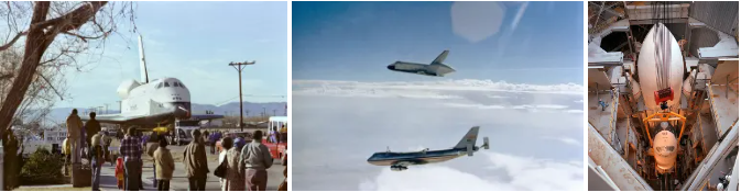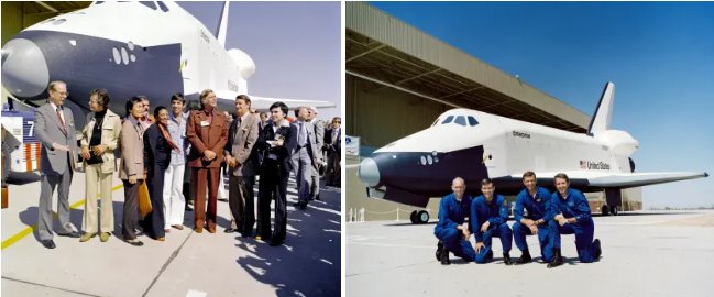 A NASA escolheu originalmente o nome Constituição para o OV-101, o primeiro veículo espacial projetado não para voar no espaço, mas para testes terrestres e atmosféricos. No entanto, uma determinada campanha escrita por fãs da série de TV de ficção científica “ Star Trek ” convenceu a NASA a renomear este primeiro veículo como Enterprise, em homenagem à nave estelar fictícia que ficou famosa pelo programa. Quando o orbitador fez seu lançamento público nas instalações da Rockwell em Palmdale, Califórnia, em 17 de setembro de 1976, ele tinha o nome de Enterprise. Vários membros do elenco de “Star Trek”, bem como o criador do programa, compareceram ao evento, acompanhados pelo administrador da NASA Fletcher e os quatro astronautas designados para conduzir os testes de aproximação e pouso (ALT) com a Enterprise – Fred W. Haise , C. Gordon Fullerton , Joe H. Engle e Richard H. Truly .