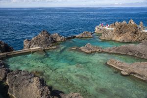 Além de belas praias, a Madeira possui algumas piscinas naturais e balneários que oferecem boa infraestrutura para os visitantes aproveitarem o dia. As piscinas naturais de Porto Moniz são as mais famosas e uma das principais atrações da costa norte da ilha. Elas ficam incrustadas na rocha vulcânica pertinho do mar e suas águas são renovadas a cada onda que invade as piscinas.