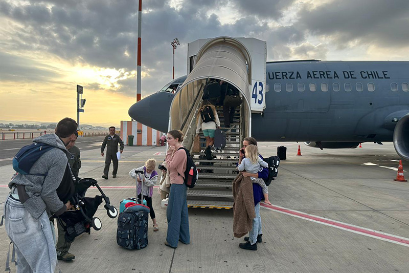 Em menos de 24 horas, um total de 209 nacionais transferiram as aeronaves Boeing 737 do Grupo de Aviação nº 10 da Força Aérea Chilena, de Tel Aviv para Atenas e Madrid.