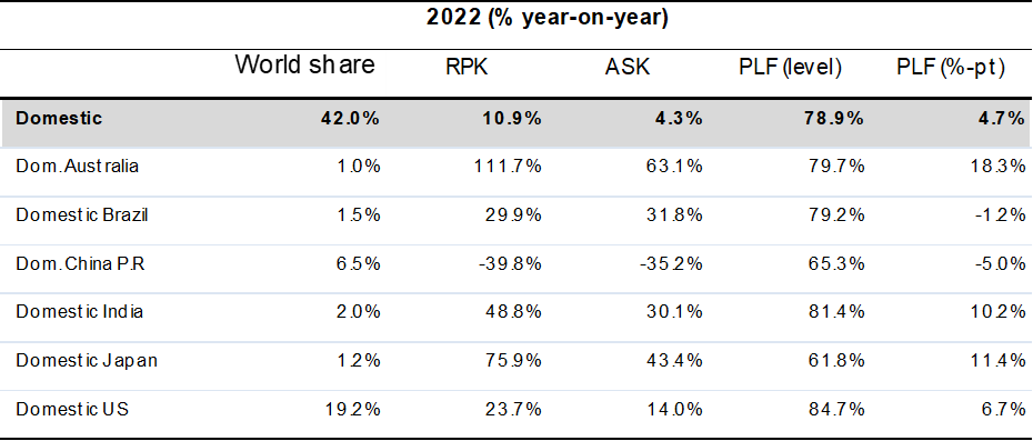 Os RPKs domésticos do Japão aumentaram 75,9% em 2022 e atingiram 74,1% do nível registrado em 2019.