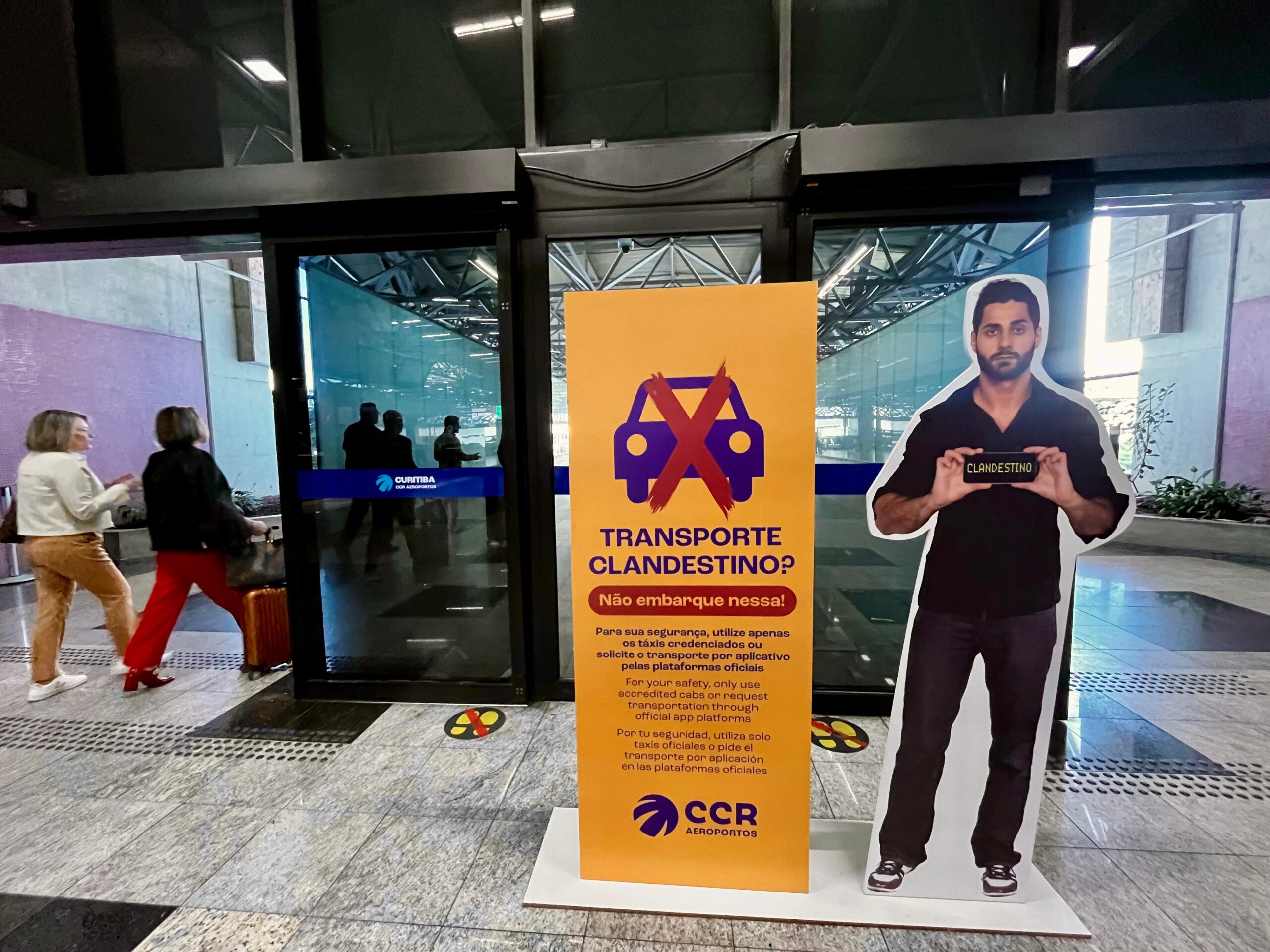 A administração do Aeroporto Internacional Afonso Pena também atua preventivamente nesse sentido. Totens informativos foram instalados nas portas de entrada e saída, com mensagens de alerta em português, espanhol e inglês. A sinalização orienta o passageiro a evitar “embarcar nessa”, em referência ao transporte clandestino, e apresenta instruções para solicitar transportes seguros.