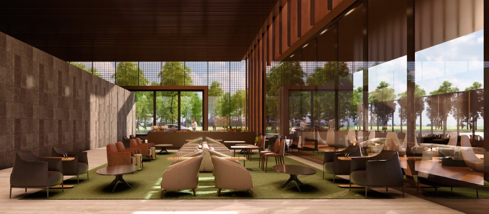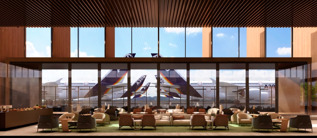 O renomado arquiteto brasileiro Carlos Rossi foi selecionado para projetar um ambiente único, inovador e sofisticado. Os hóspedes terão acesso à salas de reuniões totalmente equipadas com tecnologias de ponta e sistemas audiovisuais. Os hóspedes podem preferir ter acesso a um jardim sensorial, projetado para ajudar os clientes a relaxarem antes do voo. Um chef brasileiro estará no local para deliciar as papilas gustativas com cozinha brasileira e internacional na área de jantar a la carte, complementada por música relaxante, ou é possível saborear um coquetel.