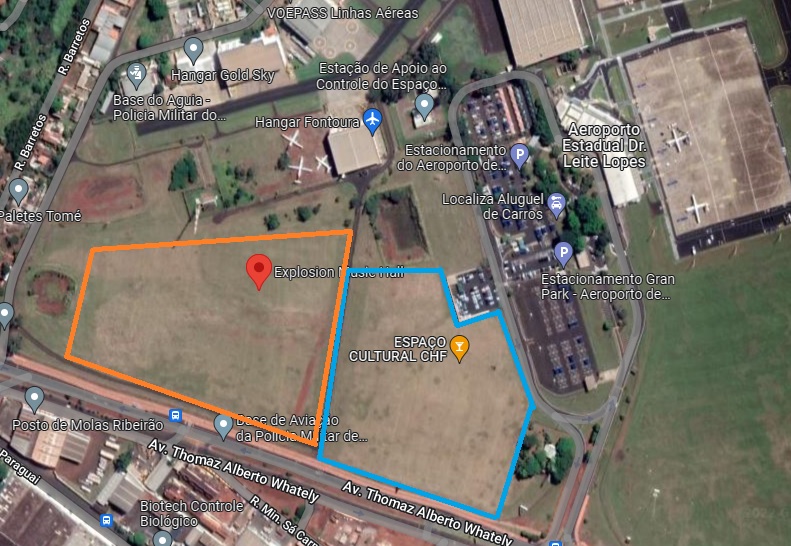 A área reservada para o evento que terá início às 23H com previsão de término às 10h da manhã do dia 27/08 esta localizada no setor externo dos hangares e recebeu o nome de Espaço CHF. Veja abaixo a localização.