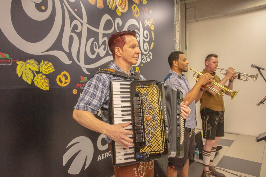 O aeroporto está oficialmente caracterizado para receber os passageiros com uma fachada temática inspirada no evento. Nos dias 9, 10, 16 e 17 de outubro, quem passar pelo local será recepcionado por uma banda ao vivo, que tocará músicas típicas da Oktoberfest, proporcionando uma experiência única logo na chegada.