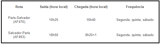 - Capital baiana receberá voos três vezes por semana a partir de 28 de outubro; em Paris, clientes poderão fazer conexões para Europa, Ásia e África