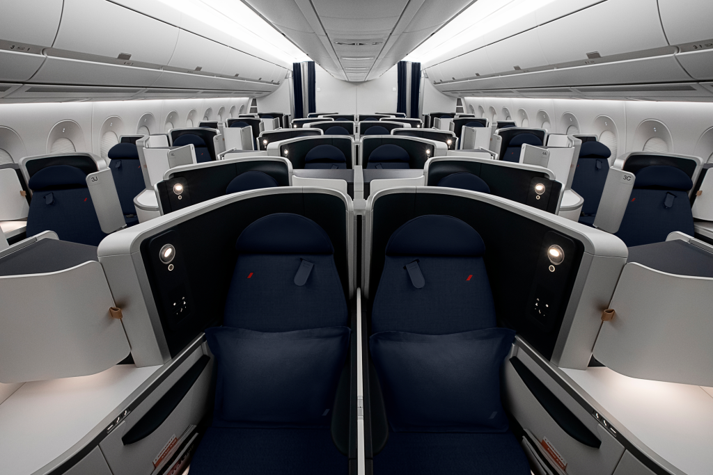 - Na Business Class, os assentos tornam-se verdadeiras camas de dois metros de comprimento, garantindo um sono tranquilo. Na Premium Economy, o novíssimo assento “Recliner” tem 48 centímetros de largura e reclina 124 graus. Na classe econômica, o assento foi redesenhado para oferecer ainda mais conforto, com uma almofada ergonômica reforçada, reclinação de 118 graus e espaço total de 79 centímetros. Cada cabine conta com amplas telas touch screen individuais de alta definição.