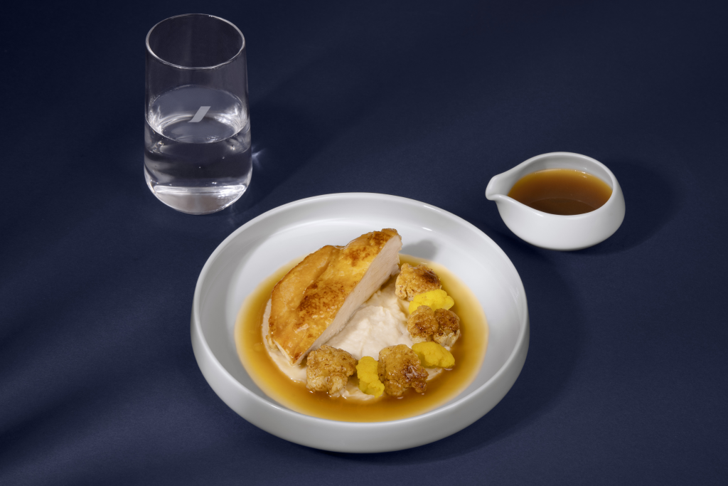 Na cabine Business dos voos de longa distância, Anne-Sophie Pic está criando novas delícias culinárias para os clientes da Air France. Nesta temporada, a chef com três estrelas Michelin criou oito cardápios para serem apreciados a bordo, incluindo um frango ao molho com saquê, revelando o poder dos ingredientes japoneses combinados com produtos franceses locais, e um nabo assado – um vegetal esquecido que agora está cada vez mais popular – com manteiga de endro e curry combinado com nozes.