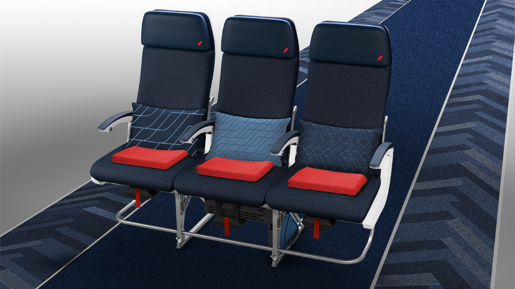 A Air France selecionou cuidadosamente materiais naturais, macios e de alta qualidade para criar os assentos, incluindo lã, alumínio escovado e couro francês. Cada assento apresenta estofamento reforçado, proporcionando maior conforto, com revestimento bordado vermelho, marca registrada da empresa.