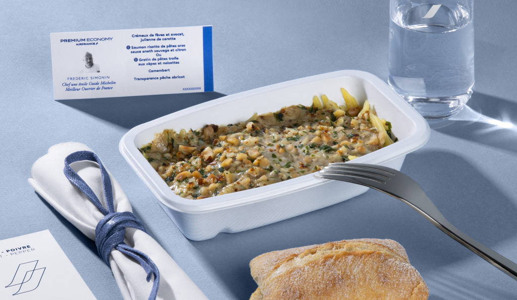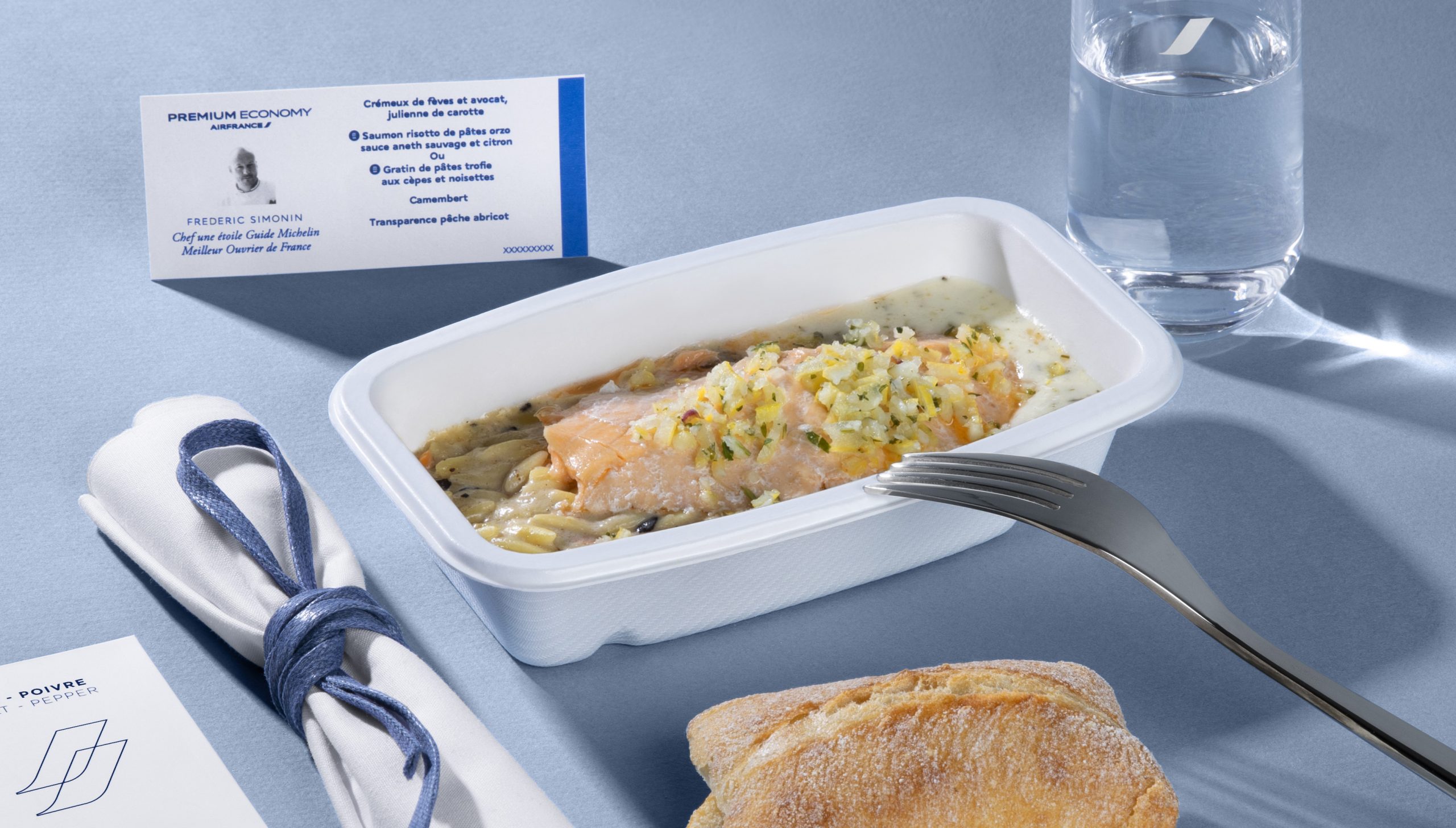 Pela primeira vez, a Air France está confiando a criação dos menus à la carte em sua cabine Premium Economy de longa distância a um importante chef francês com estrela Michelin. Frédéric Simonin é o 19º chef a trabalhar com a Air France em 2023. Partindo de Paris, o chef que possui uma estrela Michelin e é Meilleur Ouvrier de France, criou dois pratos para os clientes da Air France escolherem, incluindo uma opção vegetariana: