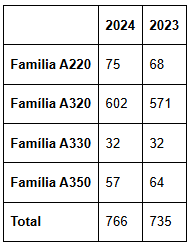 Entregas da frota de aeronaves Airbus 2024