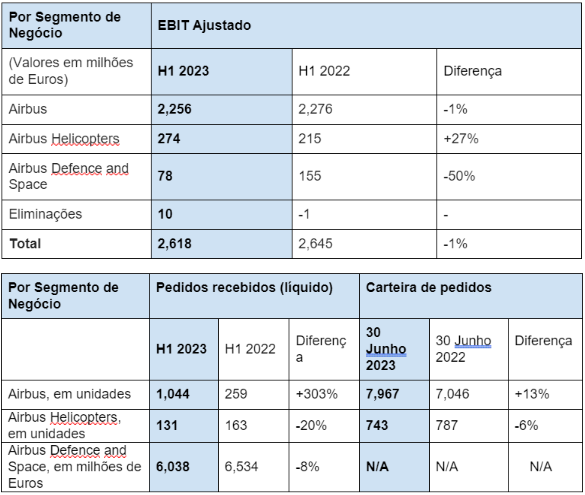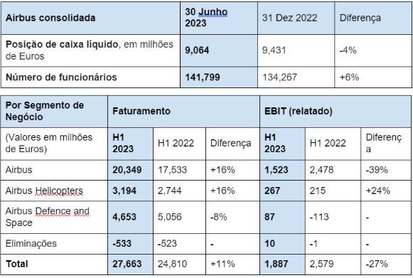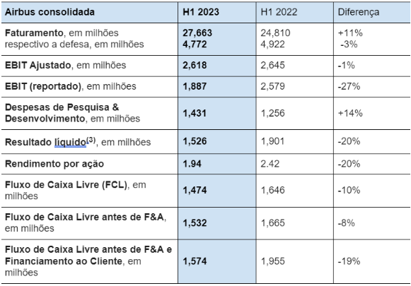 Airbus consolidada – Resultados do primeiro semestre (H1) 2023