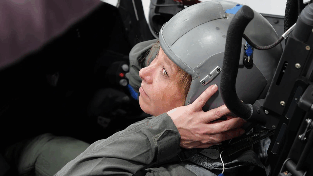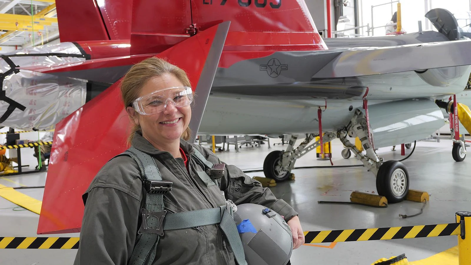 Trocando suas roupas comuns por um traje de voo, a administradora do escritório de programas do Boeing T-7, Christy McKey, subiu em um T-7A Red Hawk em uma missão para ajudar a tornar a estação da tripulação da aeronave mais acessível e funcional para futuros alunos pilotos de caça e bombardeiro.