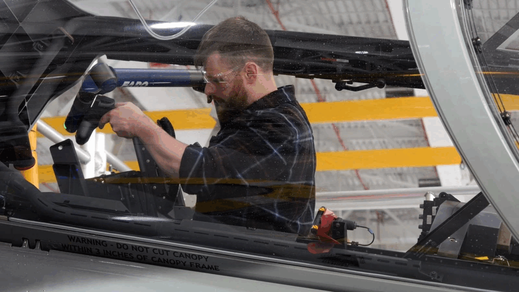 Esta é a etapa final do processo de design, que começou com modelos de design auxiliados por computador 3D do cockpit e manequins humanos 3D, depois passou para maquetes físicas e protótipos e, finalmente, para uma aeronave pronta para produção.