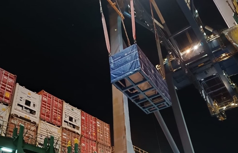 A carga, que contém conjunto de ferramentas, estruturas de elevação e veículos, precisou ser içada do navio Hyundai Grace e envolveu mais de 15 profissionais para ajudar a retirar os itens. Segundo a empresa que administra o terminal portuário, as estruturas do foguete estavam acomodadas em contêineres flat rack, que são específicos para cargas com excesso de peso.