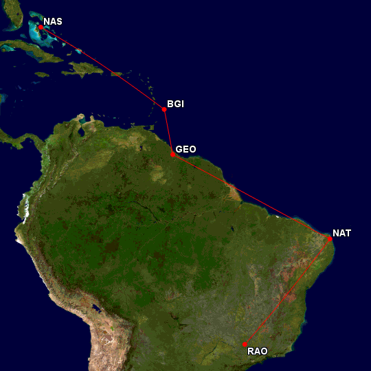 Exclusivo – Recebemos informações de que o ATR 72-600 de MSN 1077 e prefixo PR-PDX que será incorporado na frota da Voepass já iniciou seu translado para o Brasil, segundo informações recebidas por nossa redação a aeronave deverá decolar do Aeroporto Internacional Lynden Pindling (NAS/MYNN) nas Bahamas com destino ao Aeroporto Internacional Grantley Adams (BGI/TBPB) no Caribe e Aeroporto Internacional Cheddi Jagan (GEO/SYCJ) na Guaiana para realizar escala técnica e na quinta-feira decola para o Aeroporto Internacional Governador Aloízio Alves em Natal (NAT/SBSG), onde deverá cumprir os tramites aduaneiros e posteriormente a autorização da Receita Federal decola com destino ao Aeroporto Doutor Leite Lopes (RAO/SBRP) em Ribeirão Preto, onde receberá as cores da Voepass.