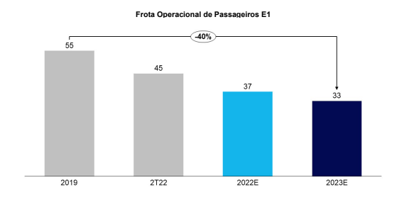 O gráfico abaixo apresenta a frota esperada de Embraer E-195 E1s para o final de 2022 e 2023: