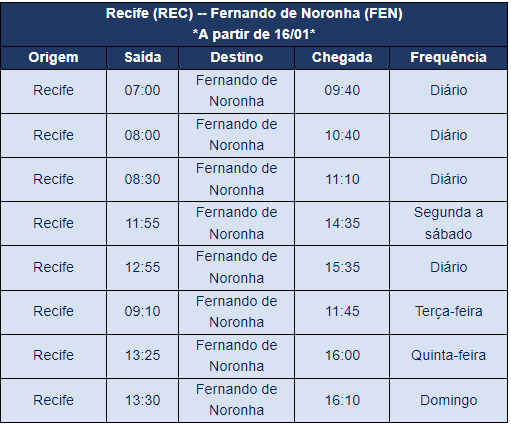 De acordo com a gerente de Planejamento de Malha da Azul, Beatriz Barbi, o aumento visa melhorar a conectividade entre o Aeroporto Internacional de Recife e o arquipélago. “Além disso, este incremento foi necessário pelo fato de a empresa realizar o transporte não só dos Clientes, mas também atuar com aviões de carga, para o envio e recebimento de encomendas e alimentos para a ilha.”, explicou.