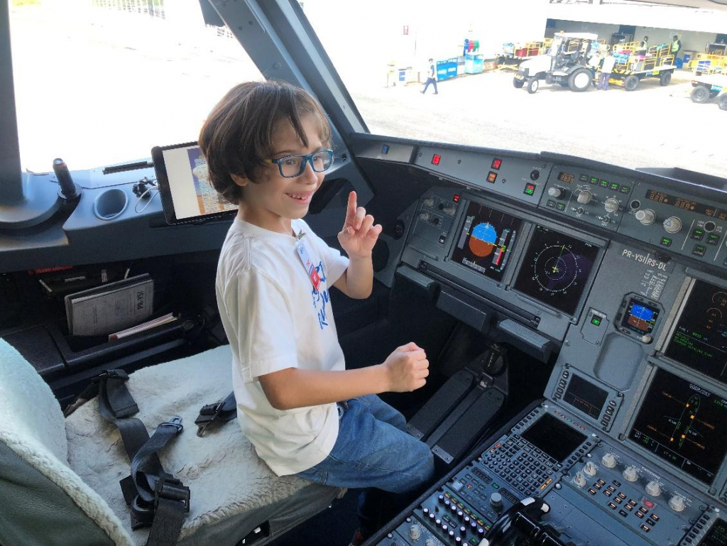 Na mais recente viagem de final de ano, um episódio chamou atenção não apenas da família, como da própria companhia aérea. “No final do ano aconteceu algo inesperado. Em todas as nossas viagens, a gente vinha procurando souvenires de avião da Azul, já tínhamos encontrado de outras companhias aéreas, mas não da Azul. Então, ele chegou no embarque chorando muito, com aquele choro copioso mesmo, de tristeza, e o pessoal da aérea quis entender porque ele estava assim, então, nós contamos que ele era muito apaixonado pelos aviões da companhia, expliquei que tínhamos procurado o souvenir e não tínhamos encontrado. E a colaboradora ficou tocada com a história, pediu nosso contato e hoje estamos aqui”, revela.