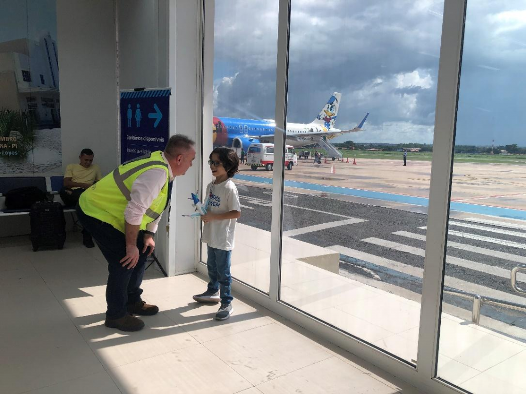 Já Jaqueline Figueiredo, gerente da Azul em Teresina, detalha que recebeu a história de Lorenzo através da equipe de Campinas (SP). “Em um embarque de Lorenzo em Campinas, ele comoveu toda a nossa equipe e organizamos essa ação com ele aqui em Teresina, local onde ele mora. Unimos forças com nossas equipes de operações, marketing, toda equipe de solo de Teresina, nossa tripulação que veio no voo e conseguimos uma aeronave temática para esse momento. Foi muito prazeroso ver a alegria dele recebendo a maquete, visitando a aeronave. Nós ficamos muito felizes, junto com a CCR que nos ajudou a proporcionar esse momento para o Lorenzo e sua família”, pontuou.