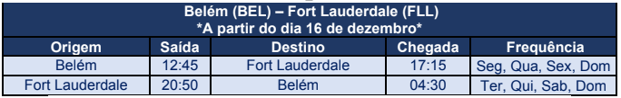 Confira, a seguir, a programação dos voos da Azul entre Belém e Fort Lauderdale*: