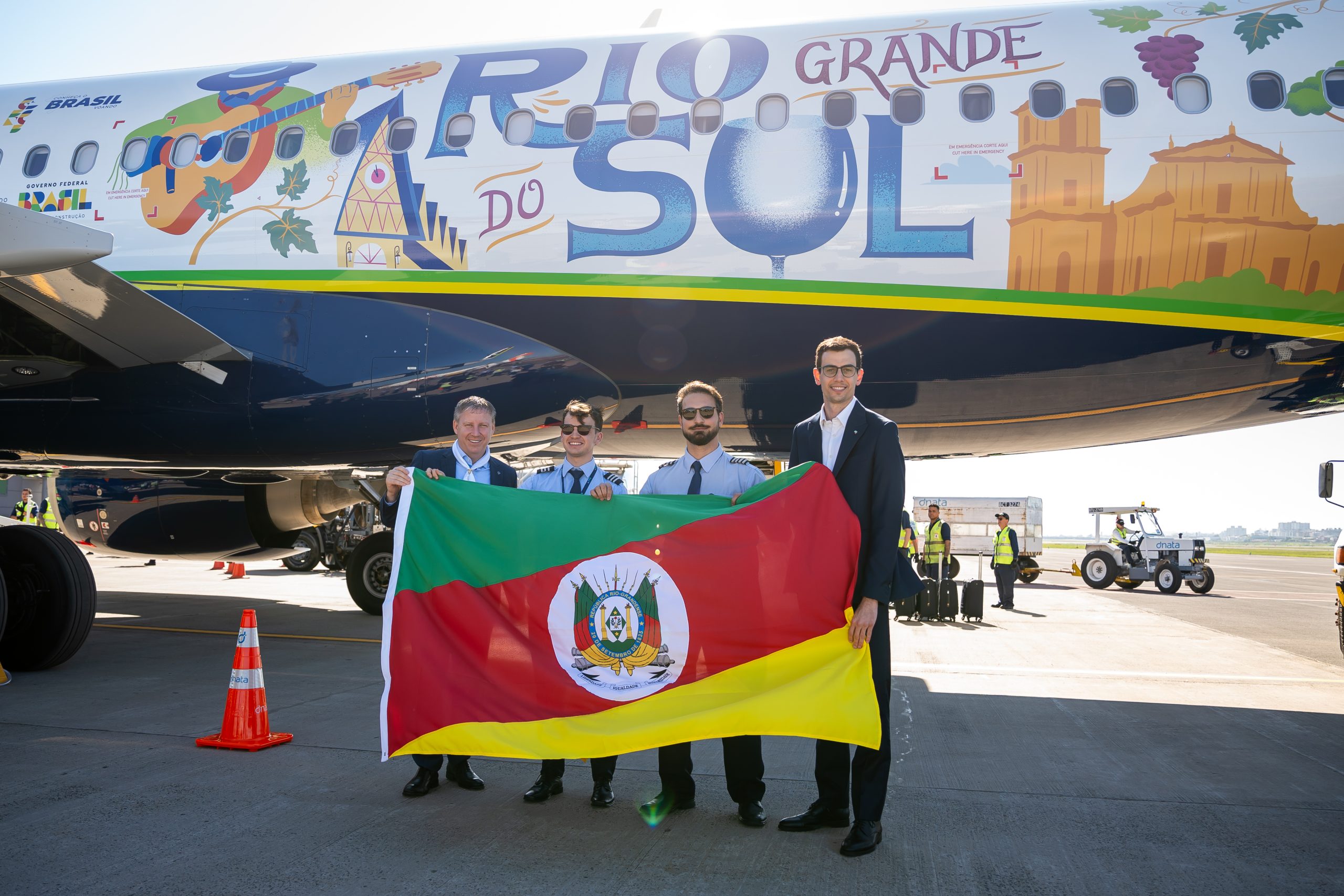 Para celebrar o momento de retomada, o voo será operado por uma dupla de gaúchos: o comandante Carlos Coster, de 40 anos, e o copiloto Henrique Schneider, 25.
