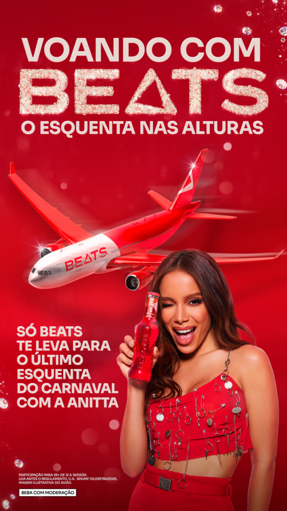Não é apenas nos blocos pelas ruas das principais cidades do país ou nos desfiles das Avenidas que Beats promete transformar o Esquenta deste Carnaval. Com todo o sabor de seu novo drink, Beats Red Mix, a marca vai ganhar os céus do país e colorir tudo de vermelho ao levar diversas experiências para seus consumidores em uma parceria inédita com a Azul. E até mesmo as cores características e tradicionais da companhia aérea vão abraçar o vermelho desse novo drink pronto da Ambev. Tudo isso com uma participante especial: Anitta.