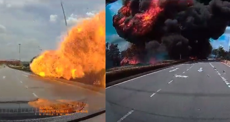 Aproximadamente às 14h51 de hoje, um jato Beechcraft Premier 1 caiu em Elmina, em Shah Alam. De acordo com a polícia, 10 pessoas perderam a vida, incluindo 8 a bordo da aeronave e duas no solo. O momento trágico foi capturado na câmera e aqui está o clipe que começou segundos antes do ponto de impacto.