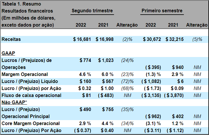 Segundo trimestre de 2022 A Boeing registrou receita para o segundo trimestre de US$ 16,7 bilhões, lucro GAAP por ação .