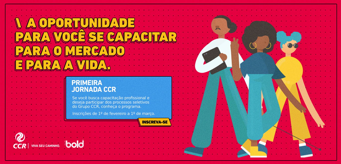 O programa de aceleração de talentos promovido pelo Grupo CCR, por meio do Instituto CCR em parceria com o Instituto Bold, está com vagas abertas. Gratuita e voltada para pessoas com baixa renda familiar, a iniciativa recebe inscrições até 1º de março pelo site institutobold. O programa de capacitação conta com o apoio da CCR Aeroportos em todas as regiões onde a empresa atua, reforçando o compromisso com o desenvolvimento sustentável destas cidades.