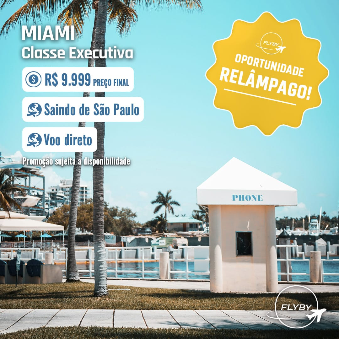 A FlyBy Viagens, ecossistema de viagens inteligentes, está com voos saindo de São Paulo para Miami, em classe executiva, por R$9.999 .