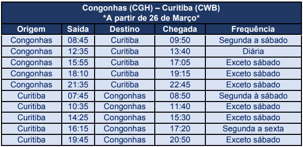 Com a nota rota, serão mais 7.316 assentos por semana conectando Curitiba ao principal aeroporto de São Paulo, permitindo que o Cliente paranaense voe até a capital paulista e retorne no mesmo dia.