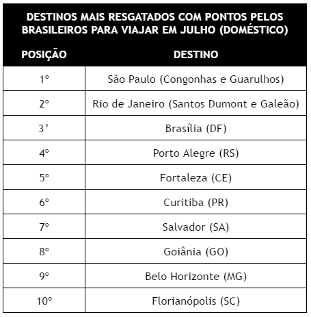 Quarto maior programa de fidelidade do mundo também revela quais são os destinos mais resgatados com pontos pelos brasileiros para viajar em julho de 2023 nos mercados doméstico e internacional.