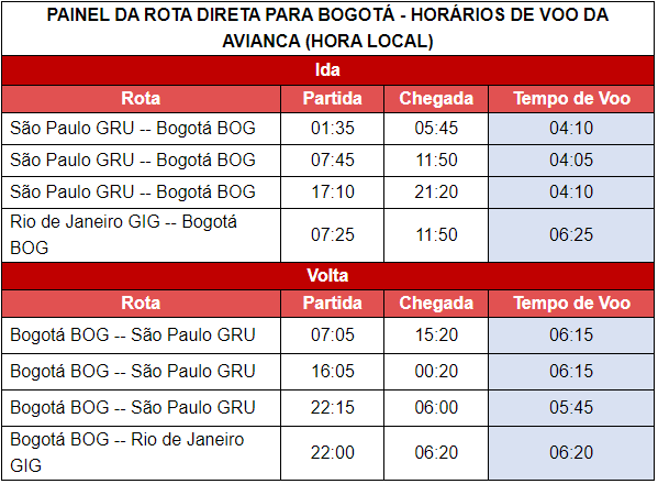 A partir de Bogotá, capital da Colômbia – cidade que pode ser acessada pela Avianca, sem escalas, em voos de São Paulo, Rio, Belo Horizonte e Manaus – é possível chegar, a preços bastante competitivos, a mais de 70 destinos no mundo. Entre esses estão os mais procurados por brasileiros: Aruba, Curaçao, Miami, Los Angeles, Nova York, Barcelona.