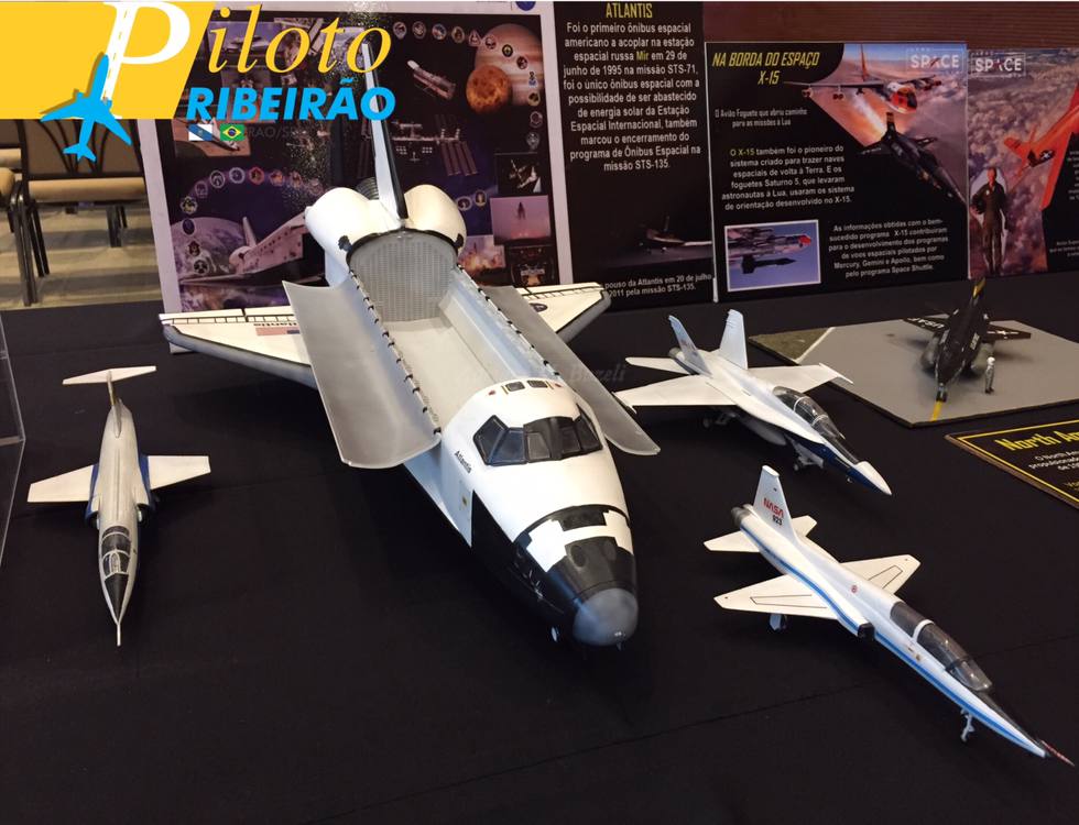 Encontramos também neste segundo dia uma grande exposição estática de aeronaves e espaço naves em escala da Aero Space GYN construídas pela Águia Platimodelismo como podemos ver em fotos abaixo: