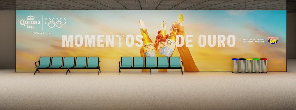 A cerveja zero álcool da Ambev, patrocinadora global dos Jogos Olímpicos 2024, montou um lounge imersivo no embarque doméstico do Aeroporto Internacional de Confins que contará com transmissão dos jogos e cerveja gelada; em parceria com os Supermercados BH, Corona Cero também irá distribuir prêmios do seu quiz olímpico