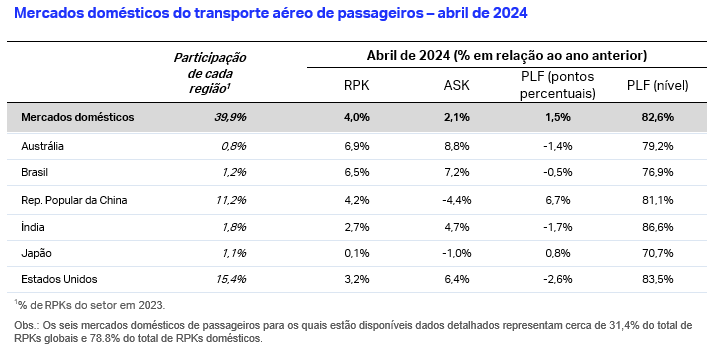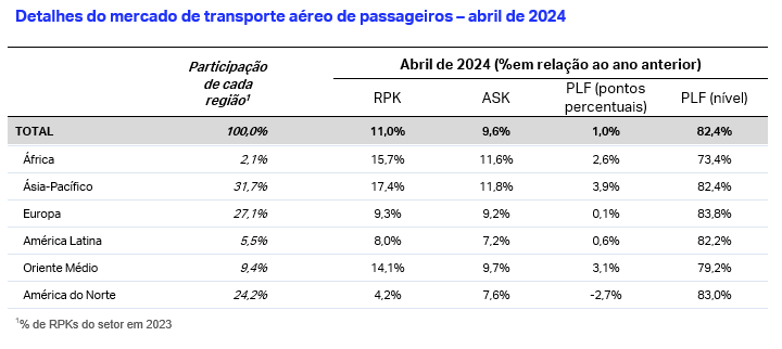 A Associação do Transporte Aéreo Internacional (IATA) divulgou os dados sobre a demanda global de passageiros de abril de 2024, .