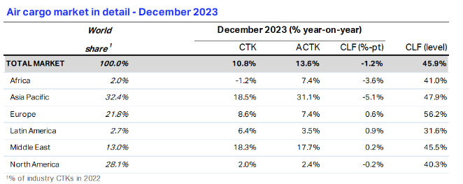 >Análise dos mercados de transporte aéreo de carga de dezembro de 2023