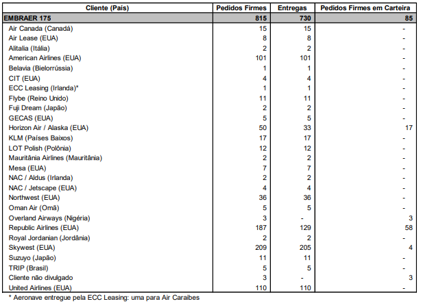 – Em 31 de março, a carteira de pedidos atingiu o valor de US$ 17,4 bilhões.