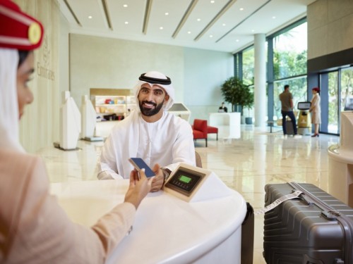 Como parte do investimento contínuo da Emirates para melhorar a experiência do cliente, a City Check-in and Travel Store tem uma localização privilegiada e premium para profissionais ocupados no centro financeiro de Dubai e permite que os clientes deixem suas bagagens 24 horas e até 4 horas antes de um voo, chegando ao aeroporto à vontade. Os clientes podem visitar o espaço e fazer o check-in a qualquer momento, das 8h00 às 10h00, diariamente, iniciando a sua experiência de viagem com um serviço contínuo através de quiosques de self check-in, em balcões dedicados com agentes da Emirates ou com a ajuda da primeira assistente de robô de check-in do mundo – Sara.