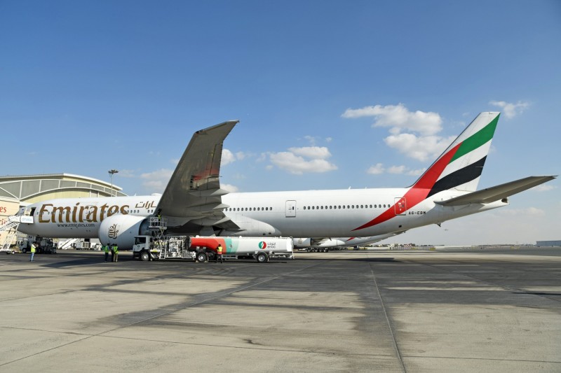 A Emirates concluiu com sucesso os testes de motores terrestres de um de seus motores GE90 em um Boeing 777-300ER usando 100% de Combustível de Aviação Sustentável (SAF). O objetivo do teste e análise em solo é demonstrar a capacidade do motor GE90 de funcionar com o 100% SAF especialmente misturado sem afetar seu desempenho, não exigindo modificações nos sistemas da aeronave ou procedimentos especiais de manutenção no motor Boeing 777-300ER ou GE90 para operar. O SAF reduz as emissões de carbono ao longo do ciclo de vida do combustível em até 80%.