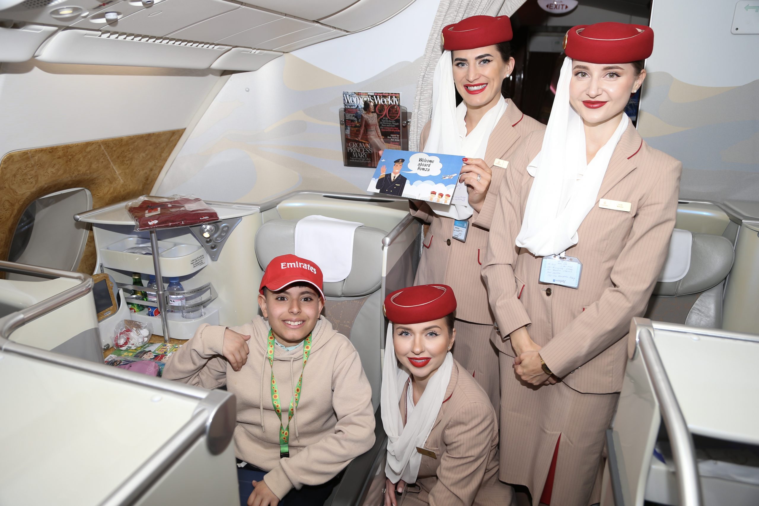 Humza Dabab voou recentemente de Melbourne para Dubai com sua mãe e dois irmãos e teve uma experiência VIP da Emirates – sua companhia aérea favorita. Este foi o seu primeiro voo com a Emirates, embora os seus pais tenham avisado que ele já está familiarizado com todas as facetas da Emirates através dos seus próprios estudos – desde a própria aeronave, ao gelo de entretenimento a bordo, ao uniforme da tripulação de cabine e ao vídeo de segurança . Humza comprou seu próprio cinto de segurança para simular e executar o aviso de segurança, do qual memorizou todas as palavras, e possui uma coleção de modelos de aeronaves da Emirates para praticar a experiência de decolagem e pouso. A mãe de Humza, Lamees, disse : ‘O avião é o lugar feliz de Humza. O destino nem é a parte mais emocionante da viagem, posso dizer com toda a sinceridade que é a viagem de avião em si. Ele está muito entusiasmado por finalmente viajar com a Emirates.”