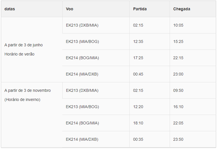 - Emirates operará voos diários para Bogotá via Miami em aeronaves Boeing 777-300ER widebody de três classes