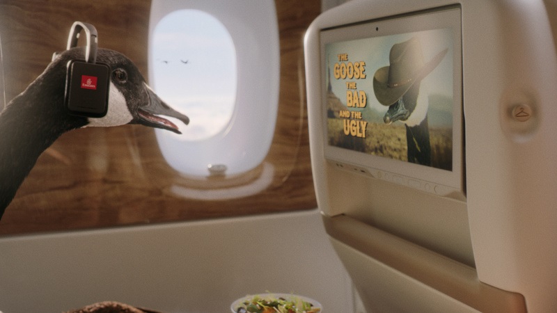A campanha mostra o ganso Gerry feliz ao decidir voar a bordo da confortável e sofisticada cabine da Premium Economy da Emirates, enquanto seus colegas pássaros migratórios estão cansados após um longo voo batendo suas asas. Gerry aparece presunçoso ignorando seus colegas enquanto eles voam ao lado do avião. O ganso saboreia uma deliciosa refeição e reclina seu assento espaçoso para assistir ao filme The Goose, The Bad and The Ugly em sua tela de entretenimento pessoal de 13,3″.
