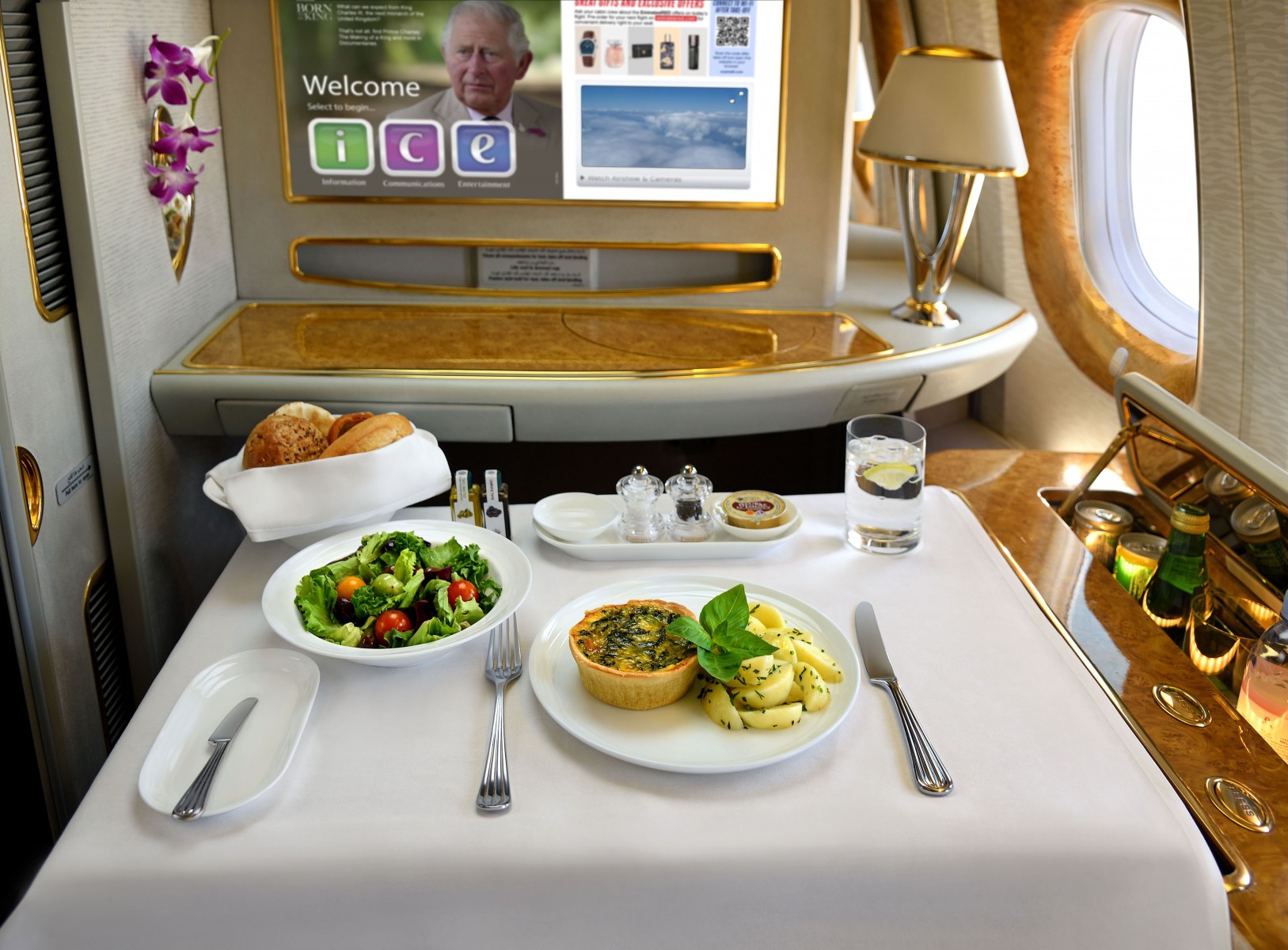 O favorito real, que pode ser comido quente ou frio, é um delicioso prato profundo com uma caixa de massa leve e crocante e sabores perfumados de espinafre, favas e estragão fresco. A inclusão do Quiche Oficial da Coroação a bordo dos voos da Emirates também dá aos passageiros a chance de participar das festividades junto com o resto do Reino Unido, que desfrutará da iguaria em festas de rua em todo o país.