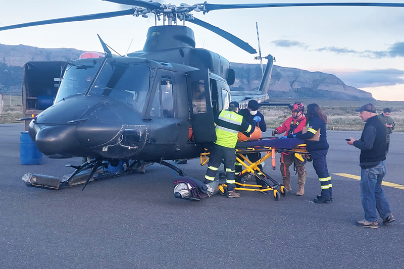 Após aproximadamente duas horas e meia de operação e escala técnica em Puerto Natales, Aviadores Militares do Grupo de Aviação N°6, a bordo de um helicóptero Bell-412, foram resgatados com sucesso do Abrigo Paso, no Parque Nacional Torres del Paine, para um chileno cidadão e outro cidadão sul-africano que, em consequência de um acidente sofrido nos trilhos daquele local, tiveram lesões graves nas extremidades inferiores.