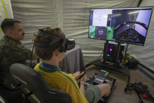 Ouvir o som do motor e o giro das cinco pás da hélice e se imaginar pilotando um A-29 Super Tucano. Essa é a sensação que os visitantes da Exposição das Forças Armadas estão experimentando nos dois simuladores dessa aeronave de caça. Atrações inéditas da Semana da Pátria deste ano, em Brasília (DF), os aparatos tecnológicos permitem que, de forma interativa, o público sinta uma mistura de sensações ao se imaginar pilotando esse avião.