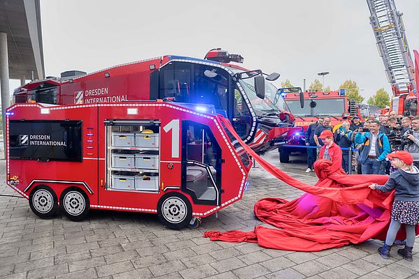 Não só Florian ficou muito maior este ano, mas a feira também começou com um estrondo na forma da inauguração e entrega do Mini-PANTHER, fabricado pelo importante fabricante de veículos de combate a incêndios Rosenbauer. O projeto criativo dirige-se especificamente a crianças com interesse em tudo o que se relaciona com os bombeiros e destina-se a ser utilizado principalmente em visitas guiadas e outros eventos. Cerca de 15 aprendizes da Rosenbauer trabalharam no processo de construção do Mini-PANTHER. O design da versão em miniatura é baseado no de seu irmão mais velho. Durante a produção, os aprendizes receberam assistência não só da sua organização de aprendizagem, mas também do pessoal do serviço de visitantes e do corpo de bombeiros do Aeroporto de Dresden.